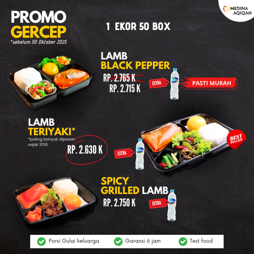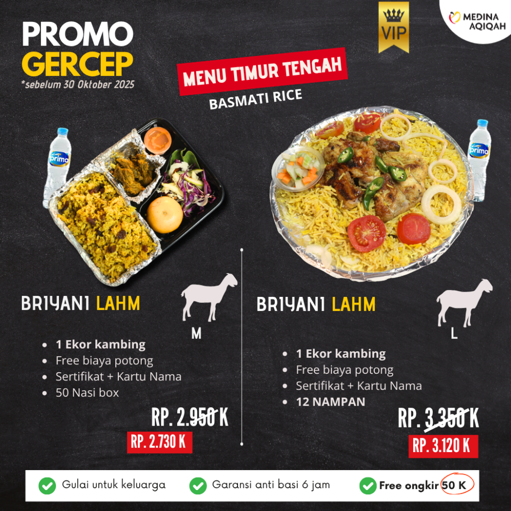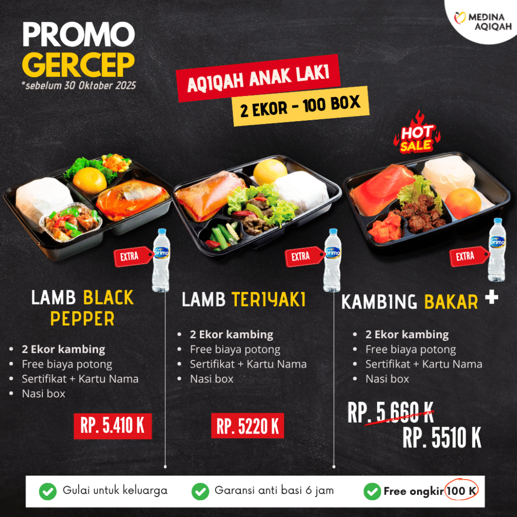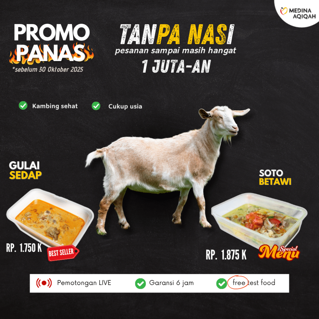 Yang cari bonus stroller, potongan harga ratusan ribu MOHON MAAF, di sini tidak ada. Medina Fokus menggaransi rasa masakan dan kambing yang disembelih masuk syarat sah Aqiqah